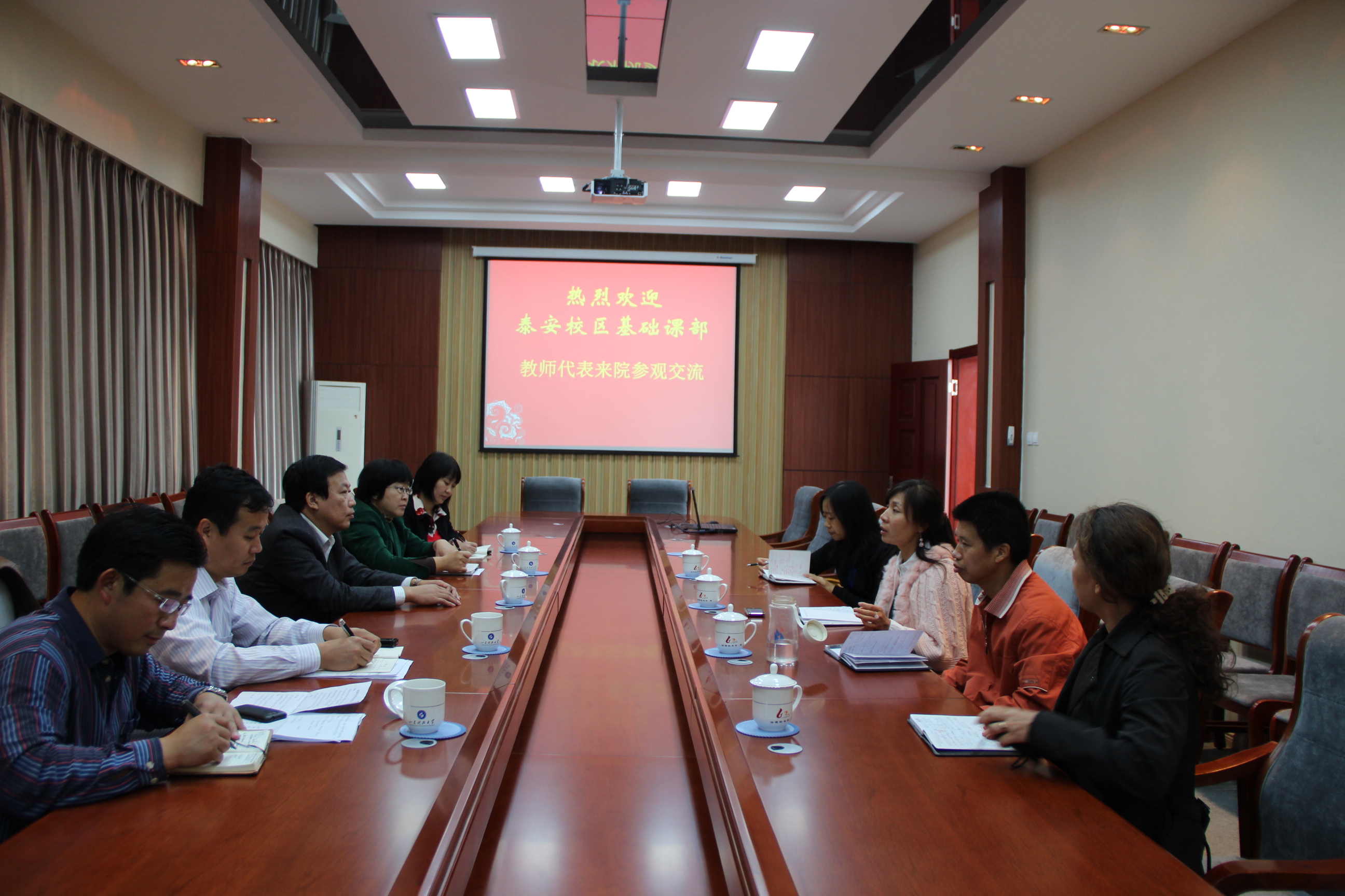 10月22日,泰安校区基础课部主任刘然慧及英语教研室负责人和部分教师代表来公司进行参观考察,公司副经理宋燕及部分教师代表与来访人员进行了交流座谈。