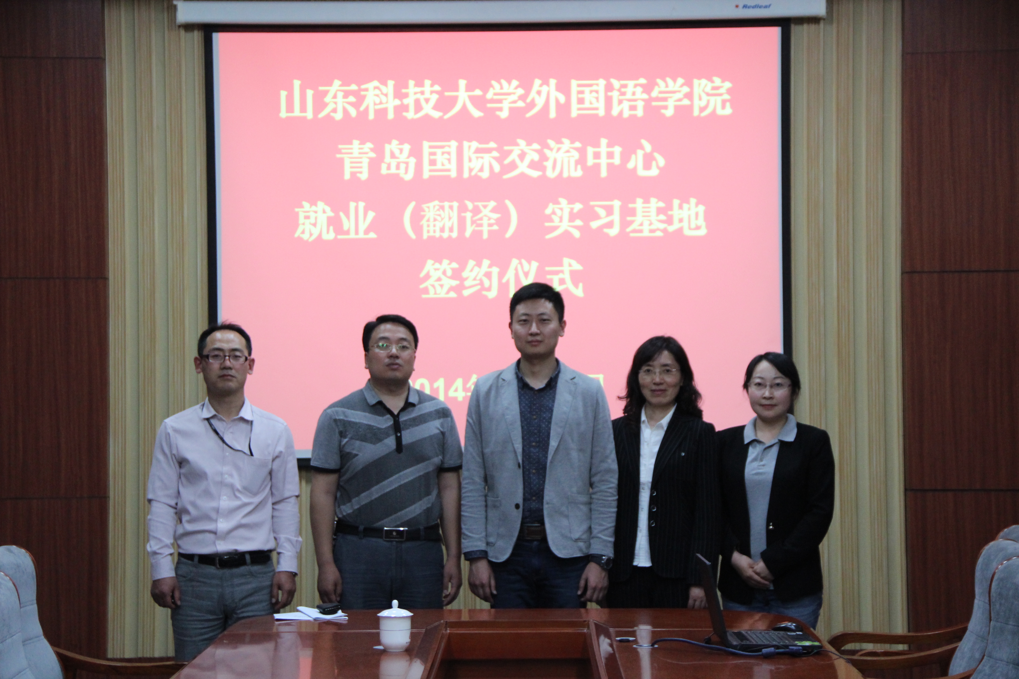 马海超代表公司对青岛国际交流中心一行表示欢迎。双方围绕优秀翻译员工见习、员工赴日留学、员工赴日就业等内容进行了深入交流。马海超、董涛分别代表合作双方签订了《员工就业实习基地建设合作协议书》。